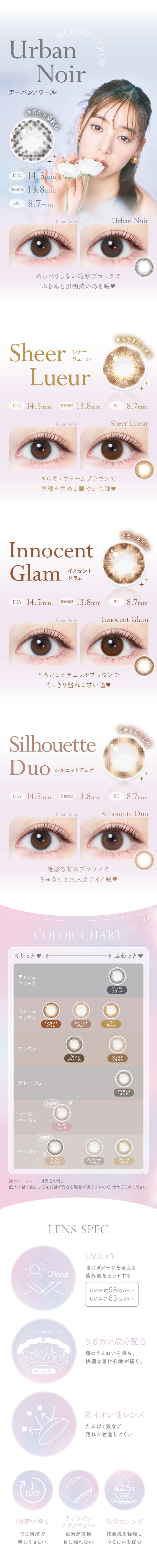 ご使用前に添付文書をよく読み、取扱方法を守り、正しくお使いください。1日の装用時間を厳守し、一度外したレンズは再使用しないでください。ご使用後、眼に異常を感じた場合は、直ちに使用を中止し、眼科医の検査を受けてください。