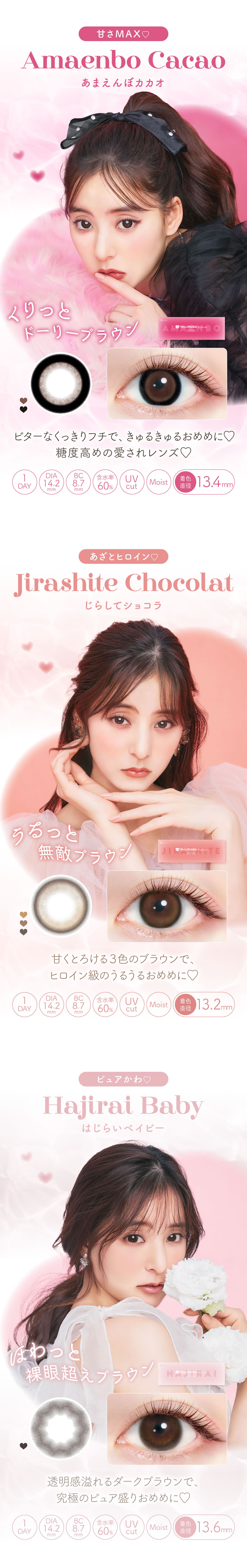 13.4mm(あまえんぼカカオ)/13.6mm(はじらいベイビー)