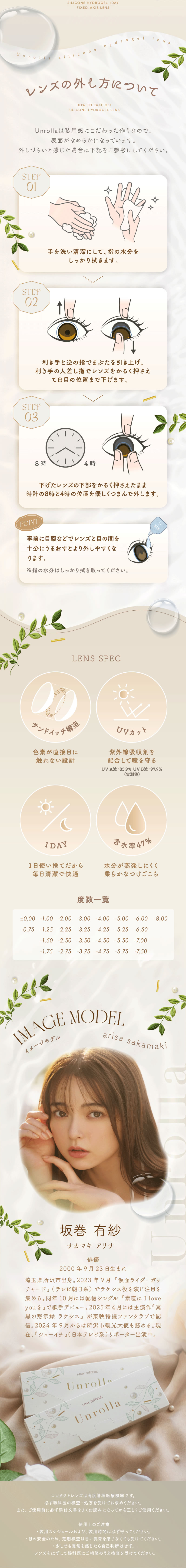 ご使用前に添付文書をよく読み、取扱方法を守り、正しくお使いください。1日の装用時間を厳守し、一度外したレンズは再使用しないでください。ご使用後、眼に異常を感じた場合は、直ちに使用を中止し、眼科医の検査を受けてください。