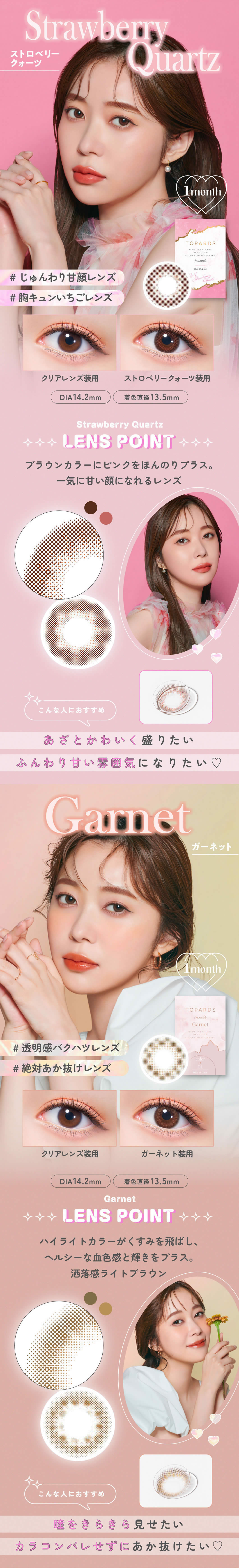- デートトパーズ:13.4mm ストロベリークォーツ・ガーネット:13.5mm
